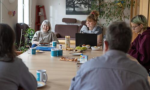 Nutzer*innen und Mitarbeitende bringen sich aktiv ein: Sie treffen sich regelmäßig, tauschen sich aus und entwickeln die Angebote der Brücke gemeinsam weiter.